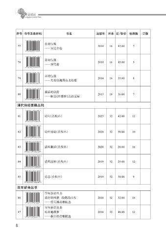 序号 书号及条形码 书名 出版年 开本 定/估价 包册数 订数
