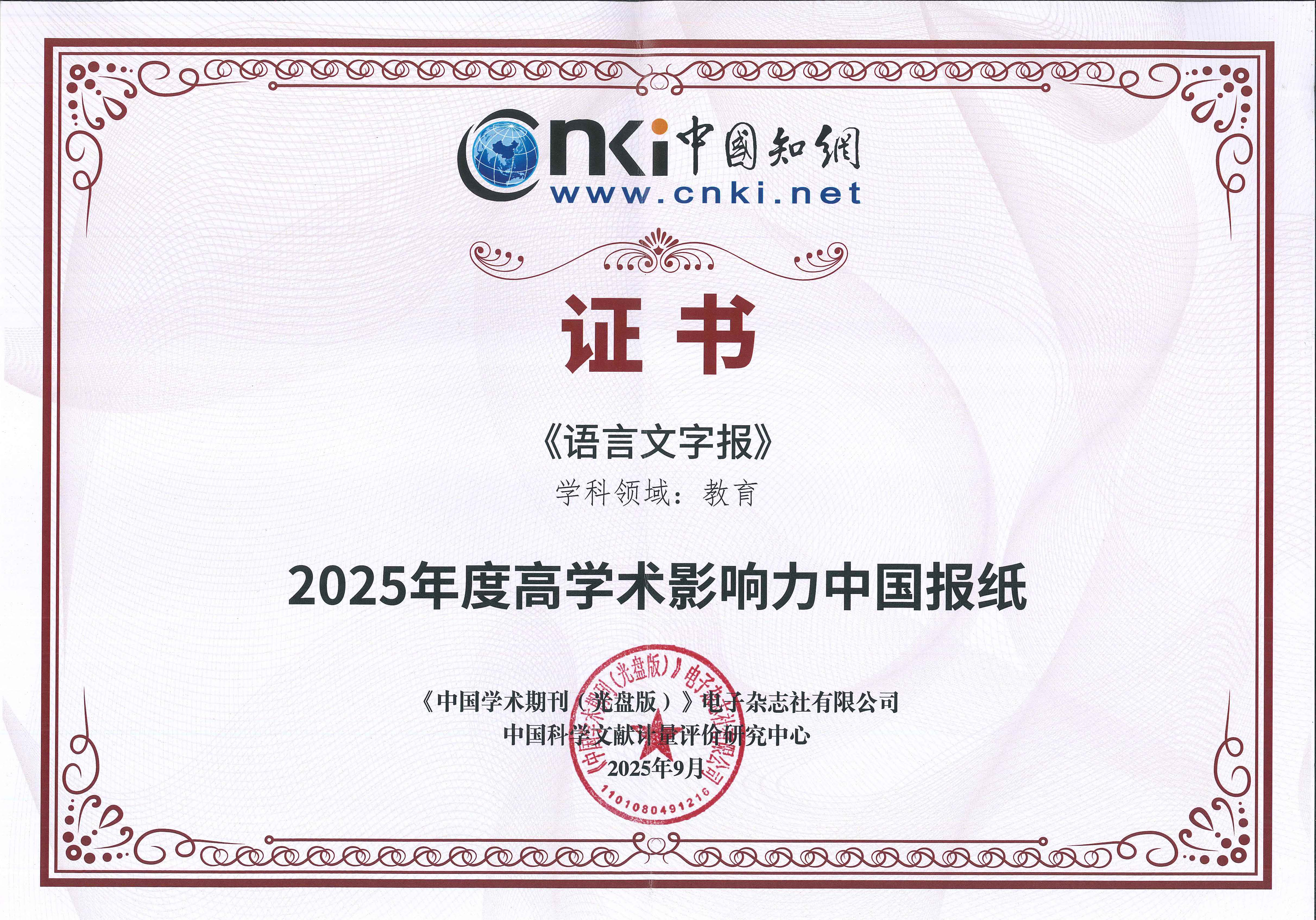 《语言文字报》是教育部主管、语文出版社主办的全国性语文类专业周报,以“植根教育,服务语言文字事业,为语言文字法制化、规范化、标准化、信息化服务”为办报宗旨,为各级各类语言文字工作者、大中小学教师和关注社会语文生活的各界人士提供行业最新资讯、解读领域政策热点、展示研究实践成果。此次入选“2025年度高学术影响力中国报纸”,是对报纸品牌及其刊载文章的学术价值的有力认可。