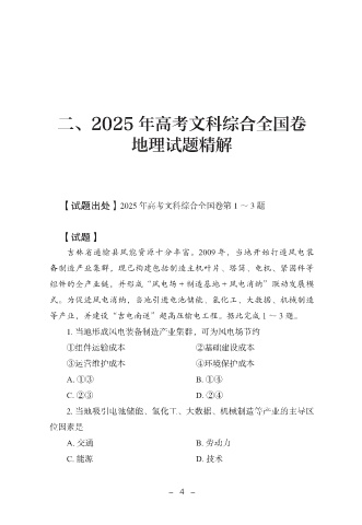 【试题出处】2025 年高考文科综合全国卷第 1 ~ 3题