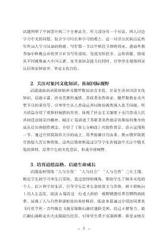 育的悠久历史和传统。这些语篇材料通过引导学生在阅读中关注中俄文