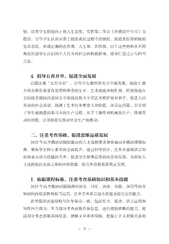 2025 年高考俄语试题依据高校人才选拔要求和普通高中俄语课程标