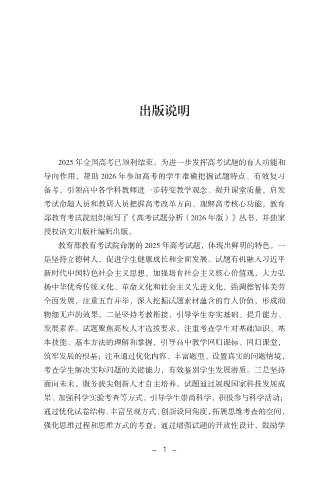 导向作用,帮助 2026 年参加高考的学生准确把握试题特点、有效复习