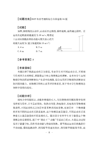 是基于能量守恒,具体考查动能与势能的转换。 撑竿跳高运动员助跑获得