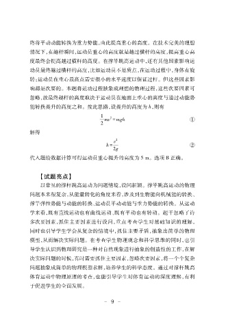 以常见的撑杆跳高运动为问题情境,设问新颖。 撑竿跳高运动的物理