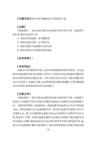 认识,对电场力、电场线、电势、运动轨迹等基本概念的理解,以及对静电场