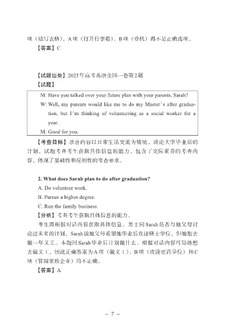 【考查目标】 录音内容以日常生活交流为情境,谈论大学毕业后的