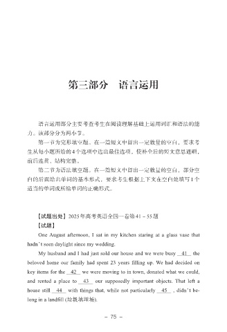 语言运用部分主要考查考生在阅读理解基础上运用词汇和语法的能