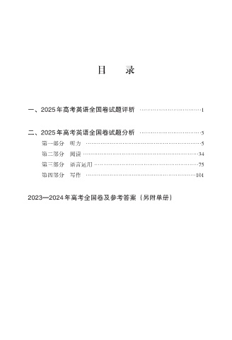 二、2025年高考英语全国卷试题分析 ……………………………5
