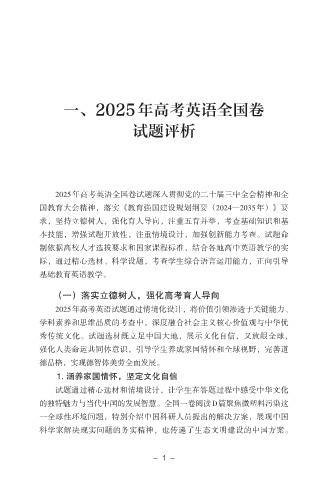 一、2025年高考英语全国卷