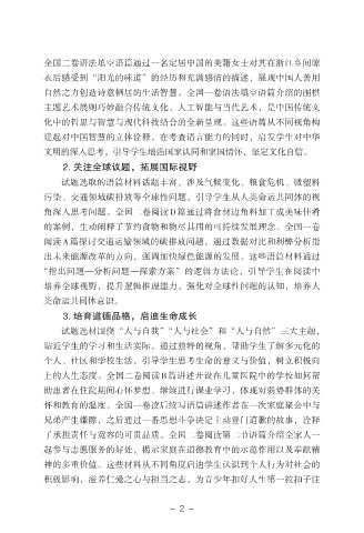 建起对中国智慧的立体诠释,在考查语言能力的同时,启发学生对中华
