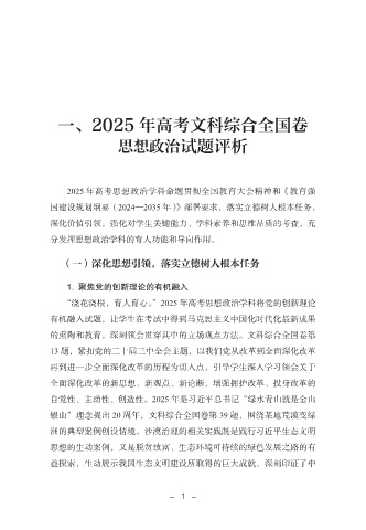 2025 年高考思想政治学科命题贯彻全国教育大会精神和《教育强
