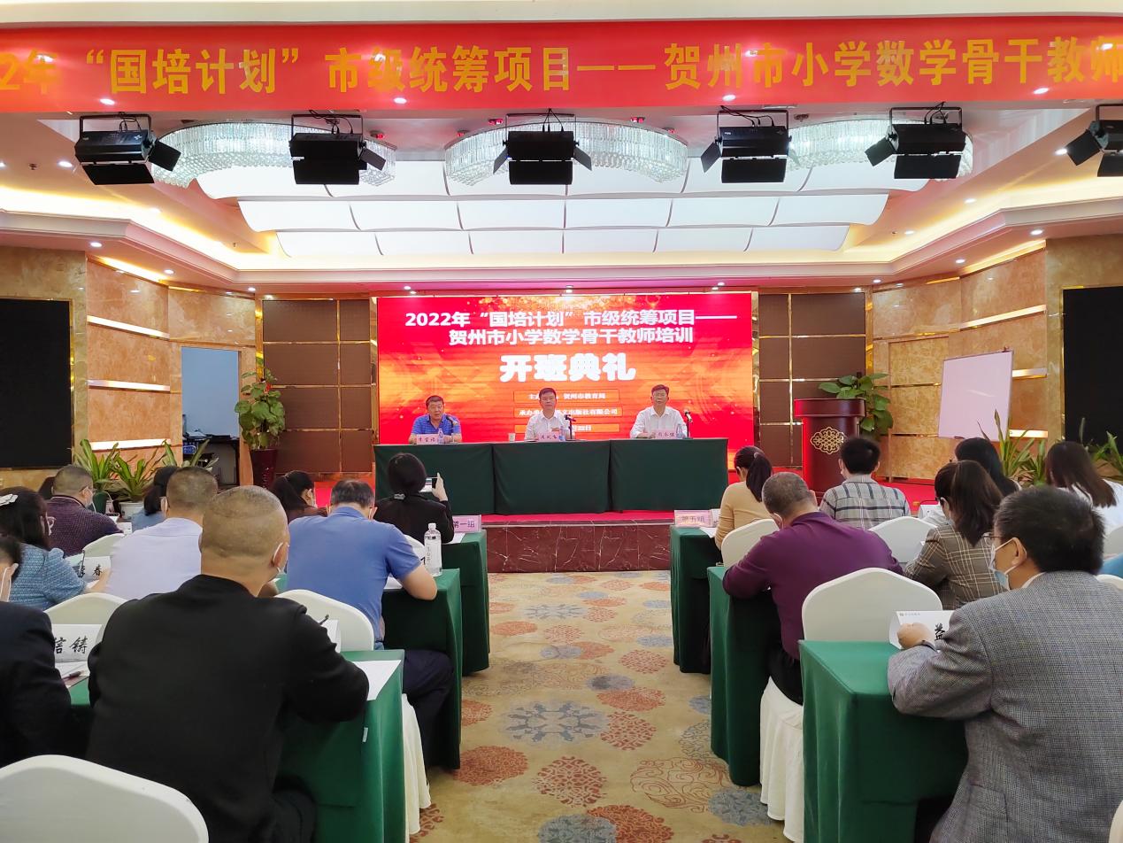 2022年11月21日,2022年“国培计划”市级统筹项目——贺州市小学数学骨干教师培训在南宁市举行开班典礼。贺州市教育局党组成员、副局长周凤飞,贺州市教育局教师培训中心主任周永健,语文出版社广西培训项目负责人李宝福出席开班典礼。来自贺州市平桂区、富川县、昭平县、八步区、中山县共325名小学数学教师参加本次培训。