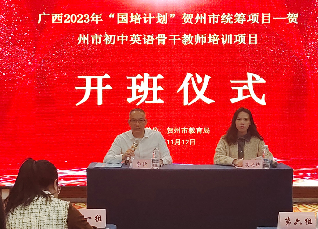 开班仪式上,贺州市教育局教师培训中心李钦主任详细阐释了项目开设的背景、培训的目标和意义,为参培学员的学习指引了方向。李钦指出,一要深刻认识开展英语骨干教师培训的重要意义;二要在新课标的背景下全面提升初中英语教学能力;三要打造一支贺州市初中英语学科骨干教师团队,并持续发挥团队的引领示范作用。